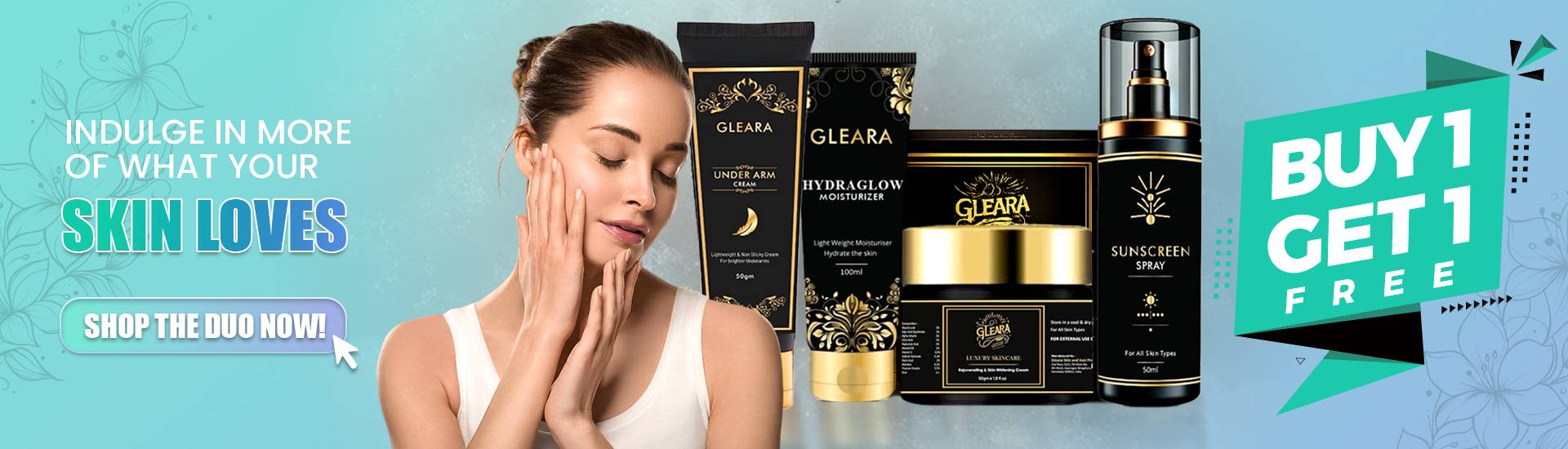 The epitome of Luxury, beauty, and nature is Gleara. As the leading beauty model of India, we at Gleara provide the pathway and solutions for the transformation of individuals’ beauty. Our hair care products and skin care products that are painstakingly designed in-house not only fit your beauty regime but also nourish your skin and hair with the soft touch of natural, making you faultless and shining. We stand for inner and outer beauty of every woman, and we plan to be not just her friend, but her true confidante as she is embarking on her journey to unveil her unique identity and personal style. Check what makeup and wellness products we have available.